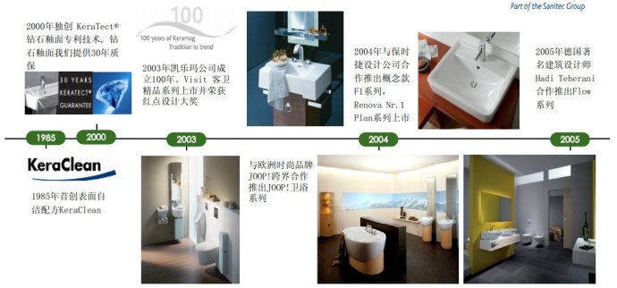 Keramag凯乐玛毋庸置疑是当今德国卫浴的第一品牌和市场领导者,占据德国30%的市场,在德国享有”百年瓷器”的美誉,有欧洲陶瓷之王之美称。