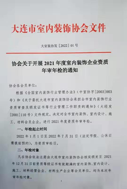 • 协会关于开展2021年度室内装饰企业资质 年审年检的通知