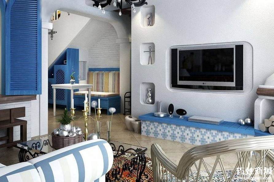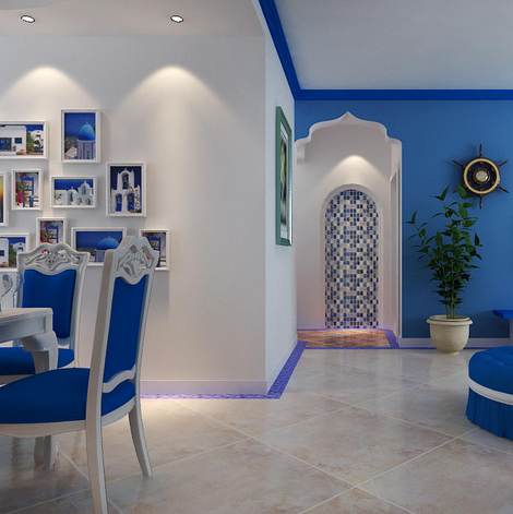 在细节上重点把握绿植,灯光等方面的设计,颜色搭配以彩色为主调,白色墙面,搭配原木色地面,烘托出优雅格调的设计主题。完美体现地中海家居设计的风格特点。